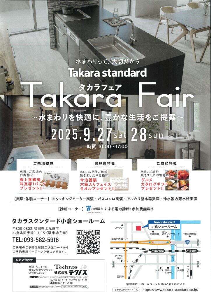 2025.09.27(土) 28(日)10:00~17:00タカラスタンダード小倉ショールーム〒803-0802北九州市小倉北区東港1-1-15