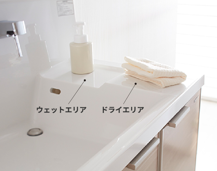 濡れるものと濡らしたくないものを分けて置ける便利な2wayカウンター。